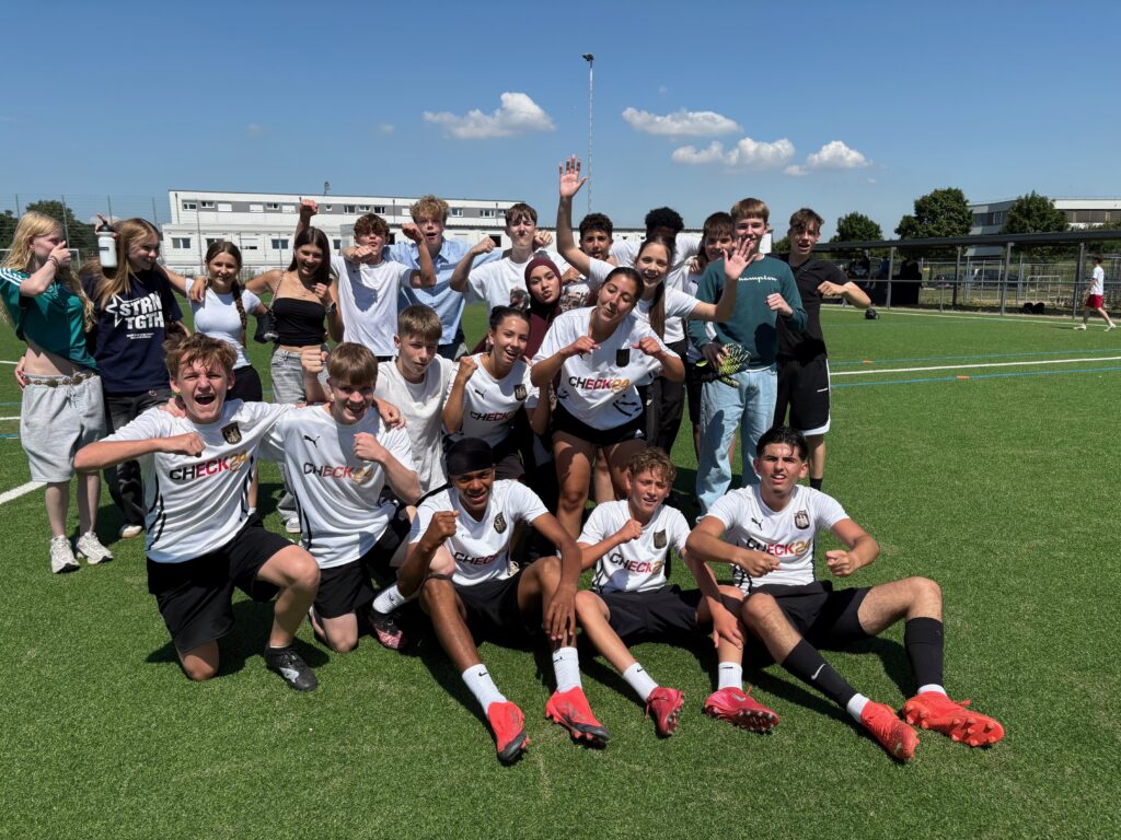Am 11. Juli 2025 war es wieder so weit: Die Schülerinnen und Schüler der 9. und 10. Klassen traten beim großen Fußballturnier gegeneinander an. Bei bestem Wetter eröffneten Herr Diener, Herr Schmid und Frau Röhrle das Turnier mit einer motivierenden Rede. Wochenlange Planung, Spielpläne, ein ausgearbeitetes Regelwerk und die Sponsorensuche lagen hinter dem Orga-Team. Punkt 9 Uhr rollte der Ball – und mit ihm Schweiß, Spannung und jede Menge Teamgeist. Auf dem Feld wurde alles gegeben. Ein großer Dank gilt auch den Schulsanitäterinnen und -sanitätern, die jederzeit zur Stelle waren und verletzte Spielerinnen und Spieler versorgten.