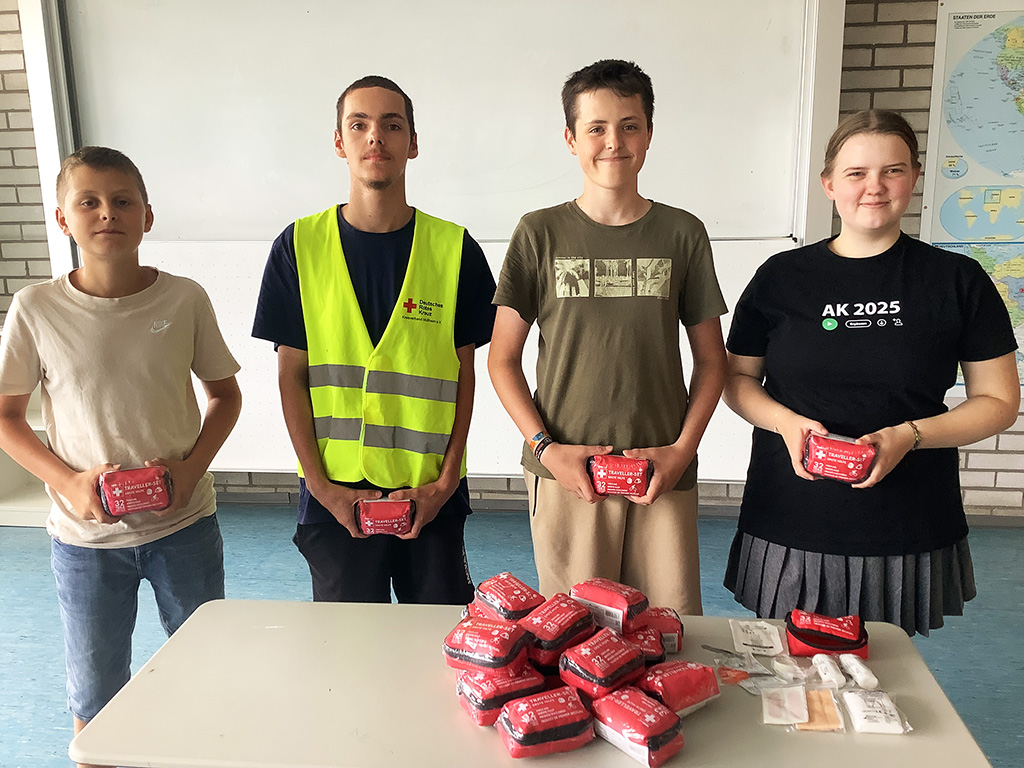 Als Zeichen der Wertschätzung erhielt jeder der engagierten Schulsanitäter*innen als persönliches Geschenk eine praktische Erste-Hilfe-Tasche für den Outdoor-Einsatz.